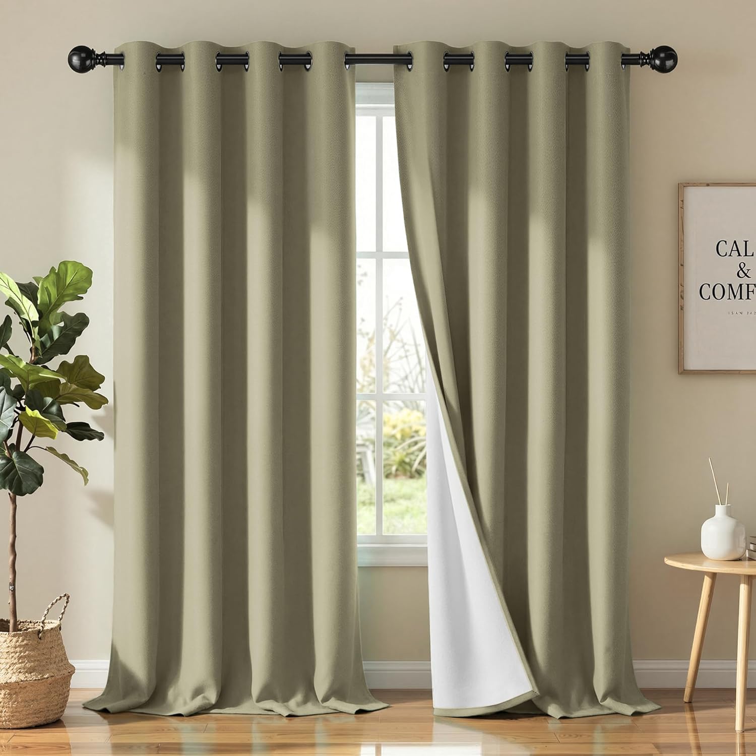 100% Linen Look Blackout Curtains - Better SleepTired of light disturbing your sleep? Say goodbye to it. Our triple-layer curtains block 100% of light and UV rays for total darkness. But they do more than block light. With exclusive Elegant W-Wave Embossing, they add sophisticated texture and instantly elevate your room’s style.✓ 100% Blackout - Triple-weave technology eliminates all light✓ Polyester Linen Curtains – Linen-look texture offering a natural, chic aesthetic ✓ Energy Saving - Reduces heat loss in winter and blocks summer heat✓ Noise Reducing - High-density fabric absorbs outside sounds✓ Easy Care - Machine washable in cold water, grommet top for easy installation✓ Safe Material - OEKO-TEX certified, free from harmful chemicals✓ Elegant W-Wave Texture – For added a luxe tactile feel, and instant artistic upgrade