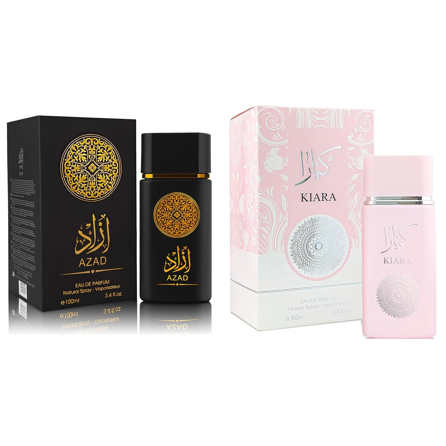 Introducing our Couple Set Perfume, a harmonious blend crafted for couples who want to complement each other's essence. For Her: Indulge in the captivating allure of our feminine fragrance, exuding elegance and sophistication. With delicate floral notes intertwined with hints of sweet fruits and a touch of musk, it embodies grace and allure. Perfect for the woman who embraces her femininity with confidence and charm. For Him: Embrace the undeniable charm of our masculine scent, designed to captivate the senses. With woody undertones and spicy accents, it exudes strength and confidence. A fragrance that embodies the essence of a modern gentleman, refined yet bold, making a lasting impression wherever he goes. Together: When brought together, these two fragrances create an irresistible symphony, symbolizing the perfect union of two souls. Whether worn individually or layered together, they evoke feelings of love, passion, and unity, enhancing the bond between partners. Elevate your shared moments with our Couple Set Perfume, a fragrance experience that celebrates the beauty of togetherness.