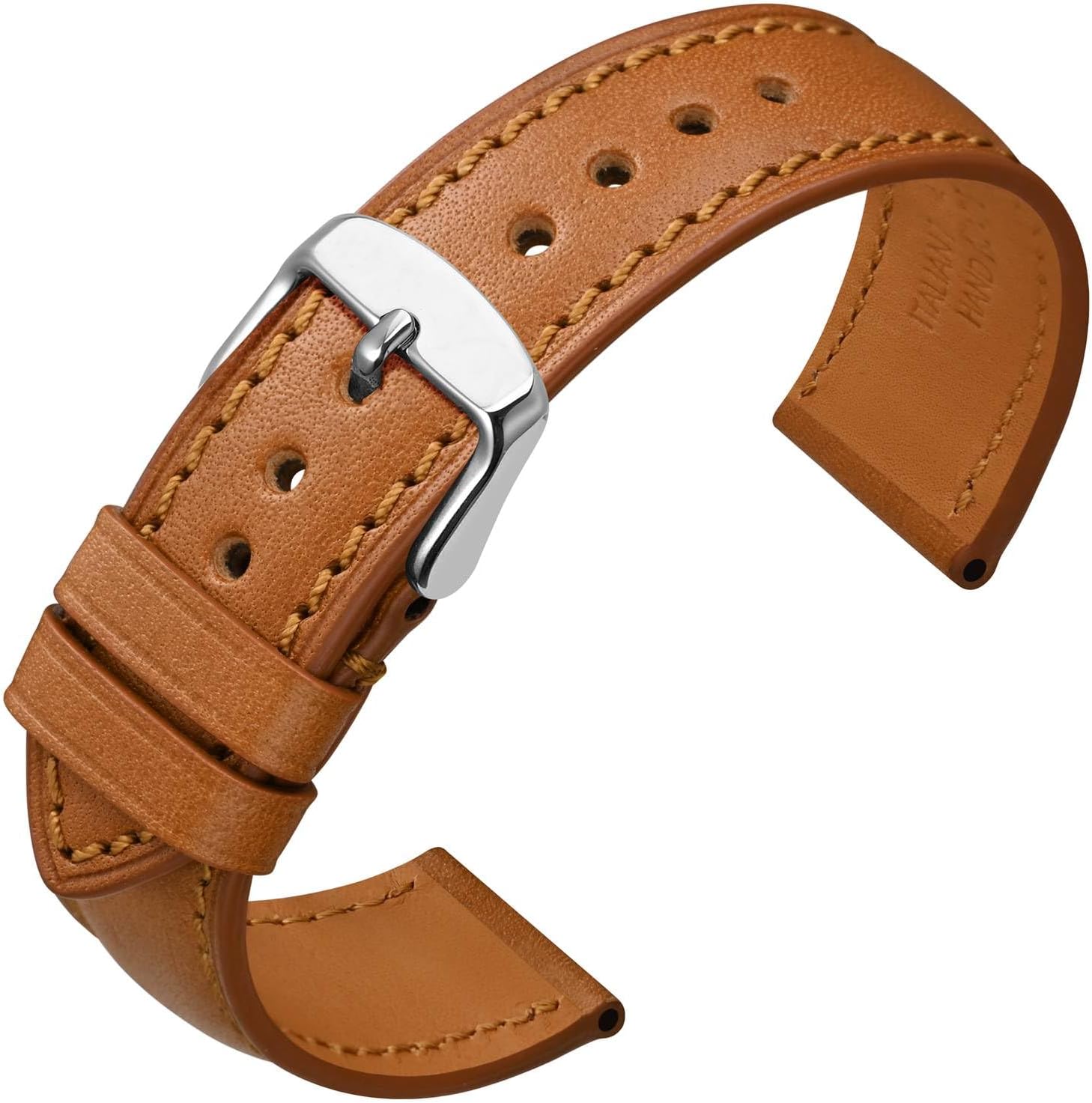 From America Horween Chromexcel Leather: Using genuine Horween leather. As you flex the leather, you may see its lightness change, revealing grain characteristics inherent to each individual piece of leather. The longer it used, the better the watch strap would look. high quality vegetable tanned waxy pull-up leather material, with unique natural leather fragrance, which could be great help for your watch to look rich. From Italian Vernazza Leather: Hand-selected top grain leather is used for the top layer of the leather watch band, presenting a luxury look with soft and smooth leather. The underside is ultra soft calfskin leather, which is the ideal lining of watch strap that against the skin and minimizes slipping while providing ideal comfort, also anti-bad smell from sweat.