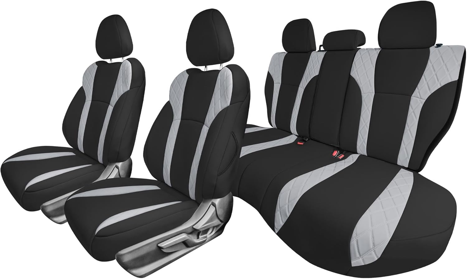 Upgrade your Subaru Forester 's interior with our Custom Fit Seat Covers, tailored specifically for 2019-2024 models. Combining style, comfort, and practicality, these seat covers come in two premium materials: Ultraflex Neoprene and Faux Leather, both designed for durability and ease of maintenance. Choose from classic black, vibrant blue, or sleek gray to match your SUV's aesthetic. The covers are designed to withstand the rigors of daily use, whether you're hauling gear for work or taking the family on a weekend adventure. With FH Group's ultraflex neoprene seat covers, you're not just adding a layer of protection; you're elevating your driving experience. Transform your ride with our custom-fit seat covers, designed to keep you safe with airbag compatibility while adding serious style to your interior. The full set has you covered with front and rear seat covers, and headrest covers. Our split rear bench design gives you easy access, combining convenience and coverage seamlessly. Whether you're conquering tough jobs or hitting the road for weekend adventures, these waterproof and stylish seat covers will keep your Subaru Forester's interior looking sharp. Elevate your driving experience with our expertly crafted seat covers that deliver both functionality and flair.