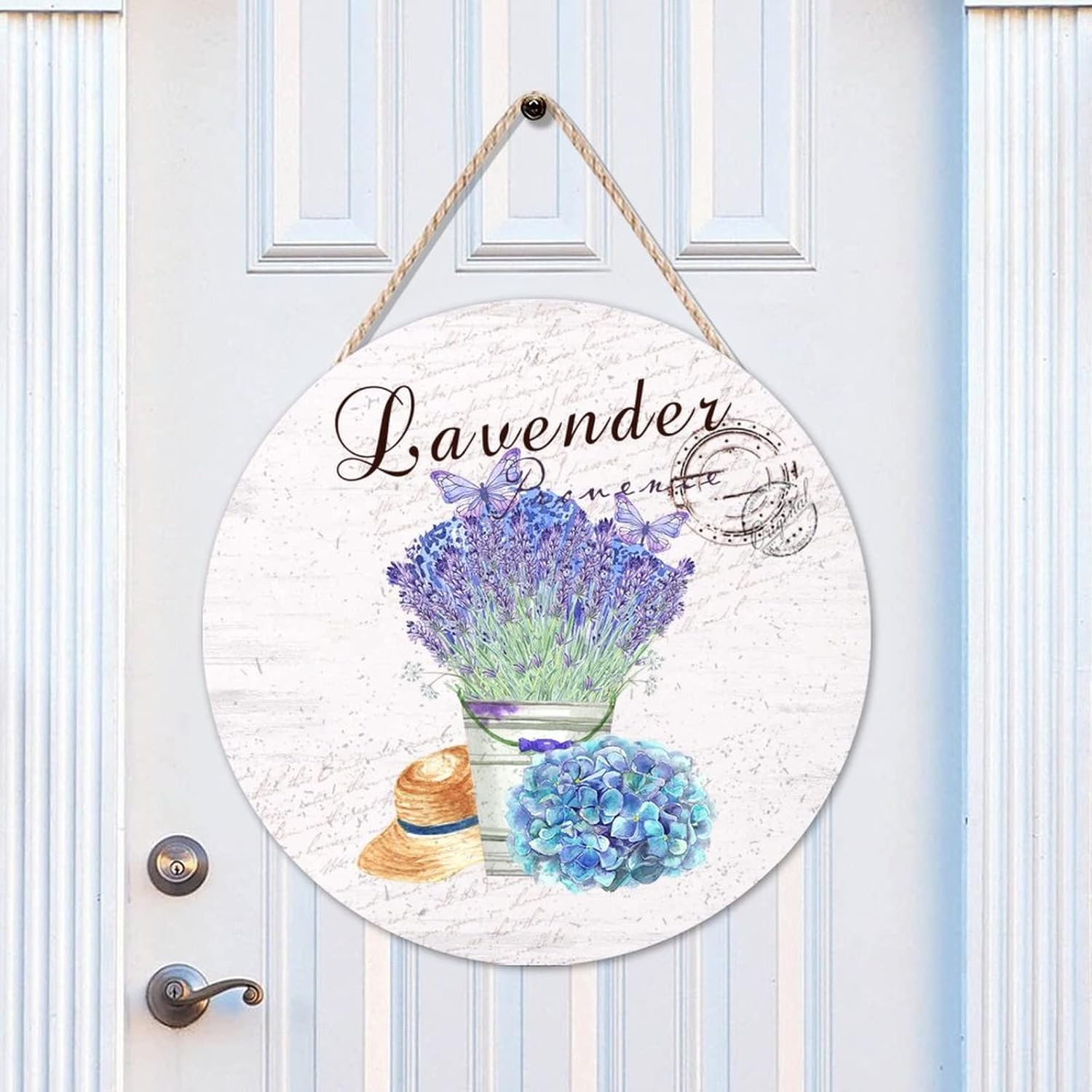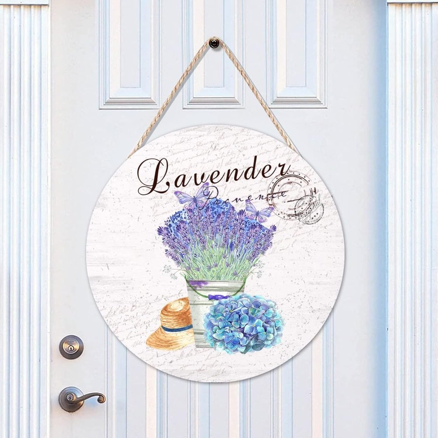 Old Paper Textures Front Door Round Wood Sign, Lavender Wood Door Sign, Personalized Pattern 16x16in Wall Door Hanging Sign for Front Door Entryway Porch Bar Pub Housewarming Gifts
