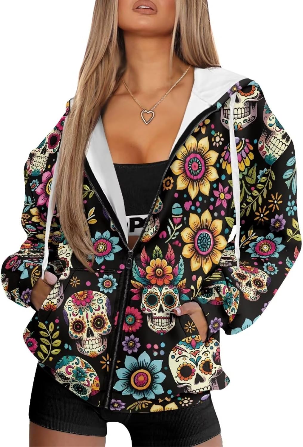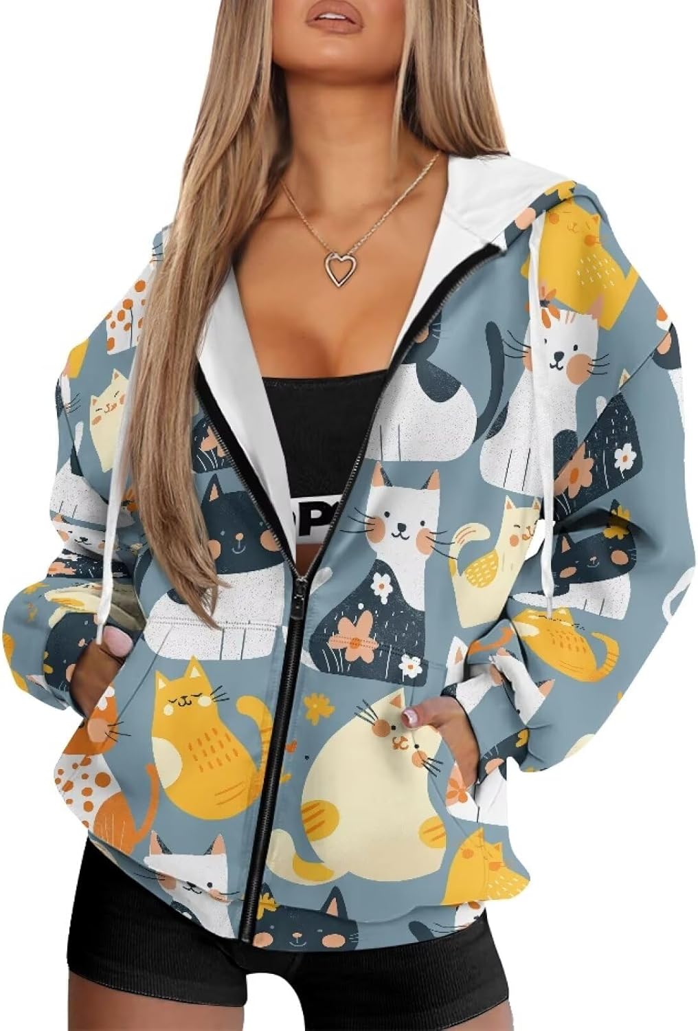 Women's Zip Up Hoodies Long Sleeve Oversized Sweatshirts Casual Loose Y2K Drawstring Jacket Drop Shoulder Fall Outfit Design: Customized personality design with your images, text or name. our hoodies have various patterns and multi-colors for you to choose, such as: floral, tie dye, cute animals, etc Occasion: Fall, winter, spring, daily, school, home, gym, workout, sports, outdoor activities Washing Care: Hand washable or machine washable, do not soak for a long time, no bleach Tips: Please allow little color differences due to different camera or light environment Due to different measurement methods, it is reasonable for 1-2cm size deviation