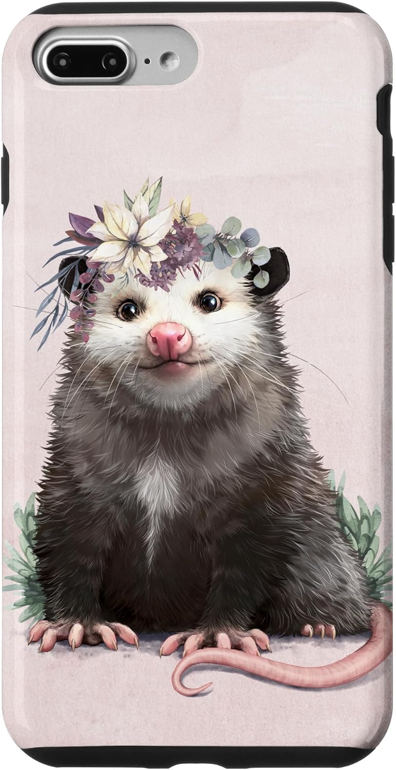 Animal Art design. This painting features an adorable possum with flower crown. Makes a great gift for any possum lover!