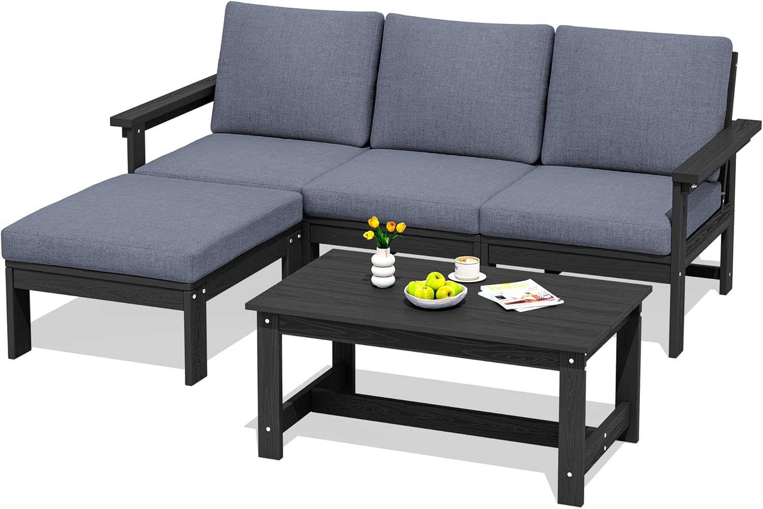 | Included Components | Includes five set cushions, Includes one 3-seater sofa, Includes one coffee table, Includes one side table, Includes two single sofa |