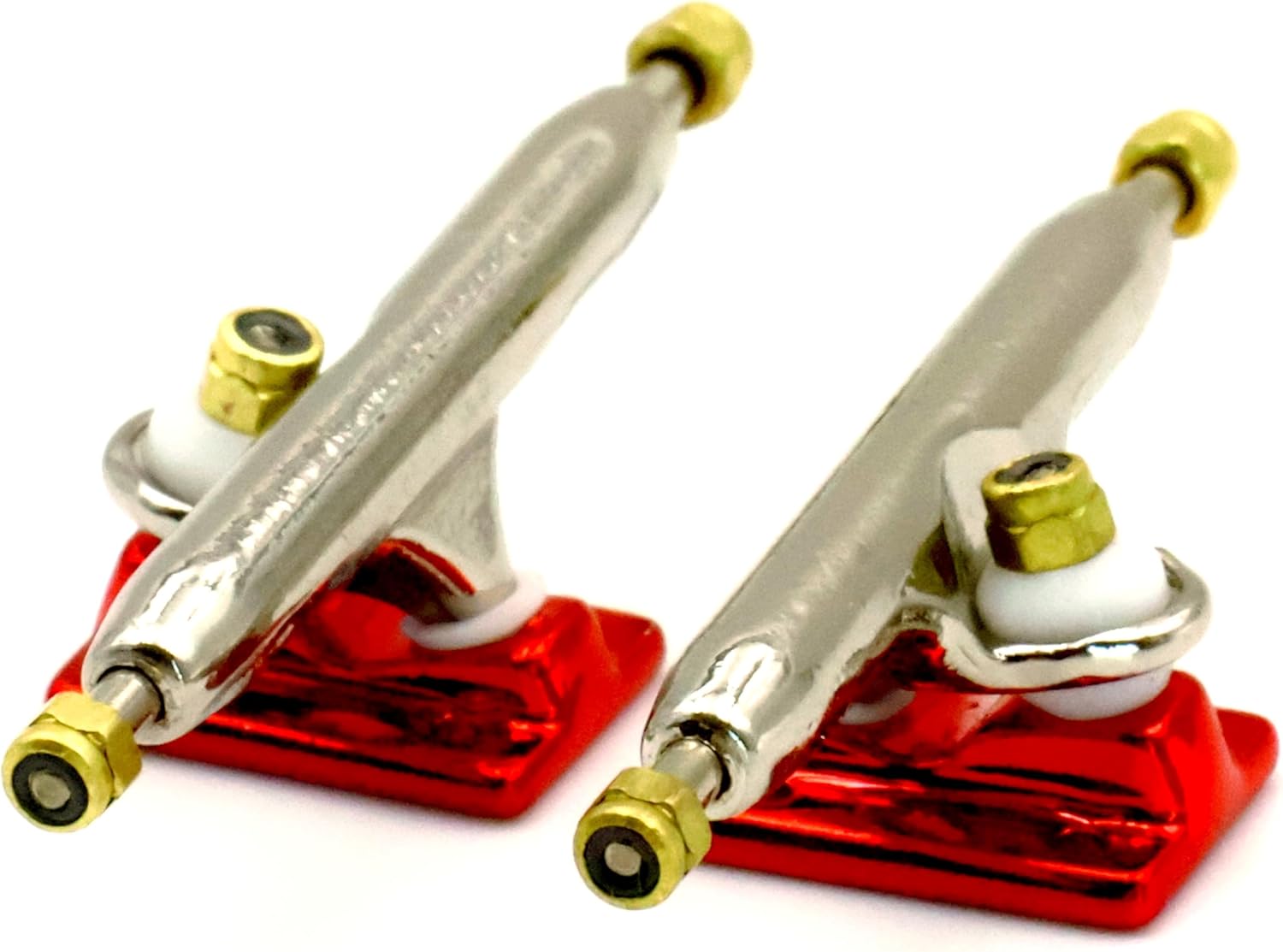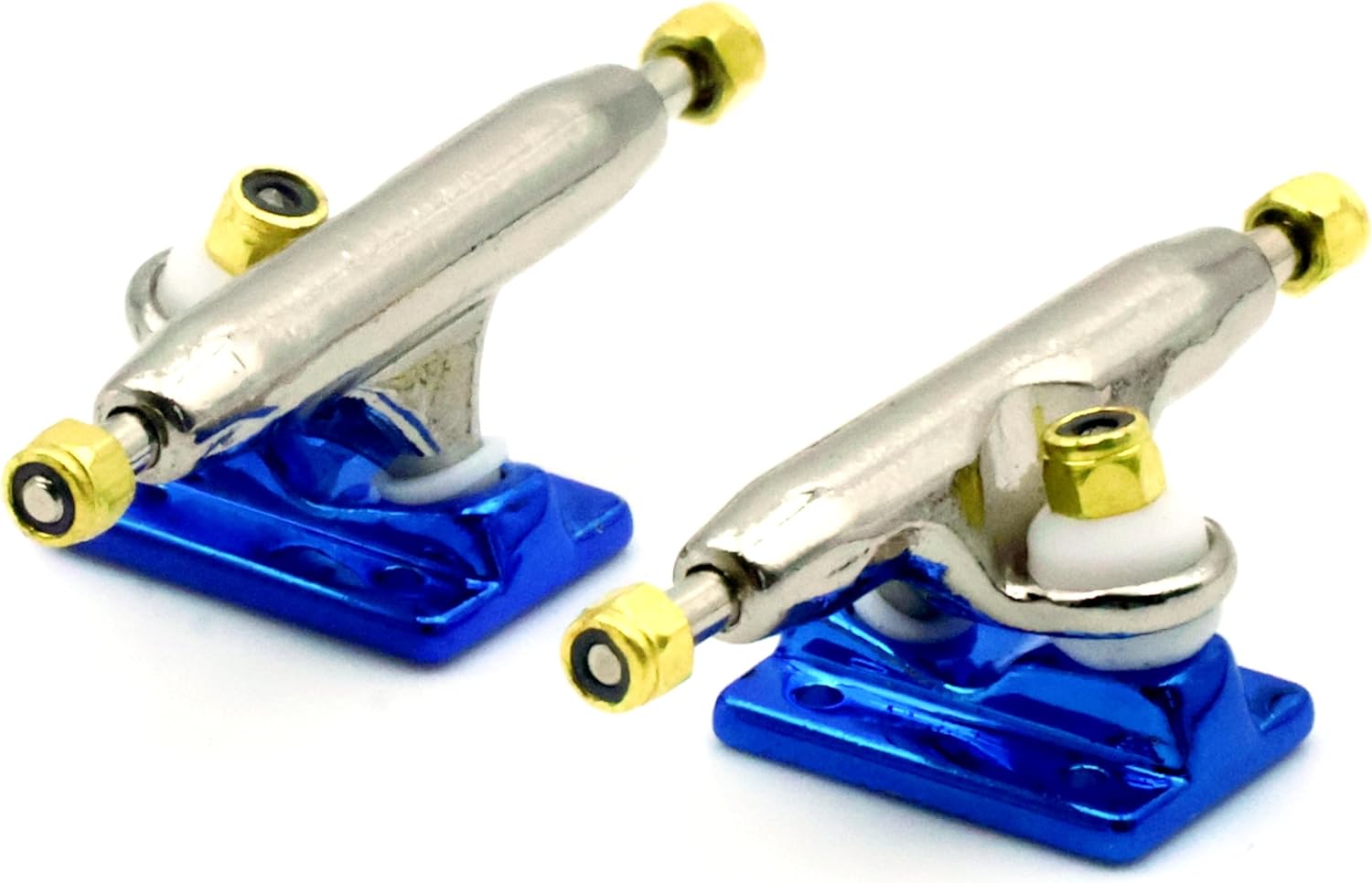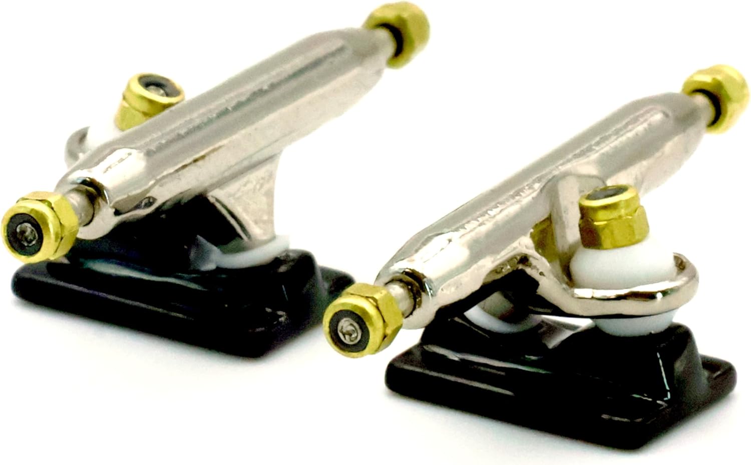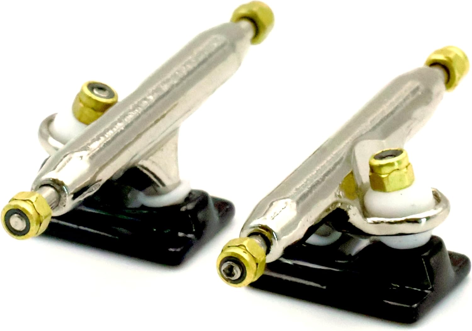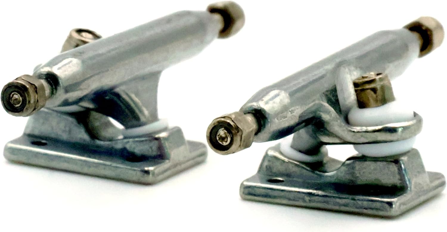 ★ RACOFSB V3 Truck is an upgraded version of V2.made of solid zinc alloy,knurled axle and improved hanger make the axle not easy to loosen★ V3 fingerboard trucks have a new hanger shape design,the kingpin of V3 base is tilted, which is different from V1 and V2 base.★ The bushing and pivot cup of V3 fingerboard truck are made of soft and highly elastic materials to make it have a flexible riding experience★ The whole truck adopts electroplating surface treatment,paint are more shiny and will not wear down easily over time★ Lock nuts with nylon inserts have a good anti loose effect.Thick nylon layer is not easy to fall off★ V3 trucks are compatible with all types of single bearing fingerboard wheels,and perfect for riders of all skill levels★ 1 set including 2 trucks,6 gold lock nuts(Installed), 9 screws and 1 screw driver