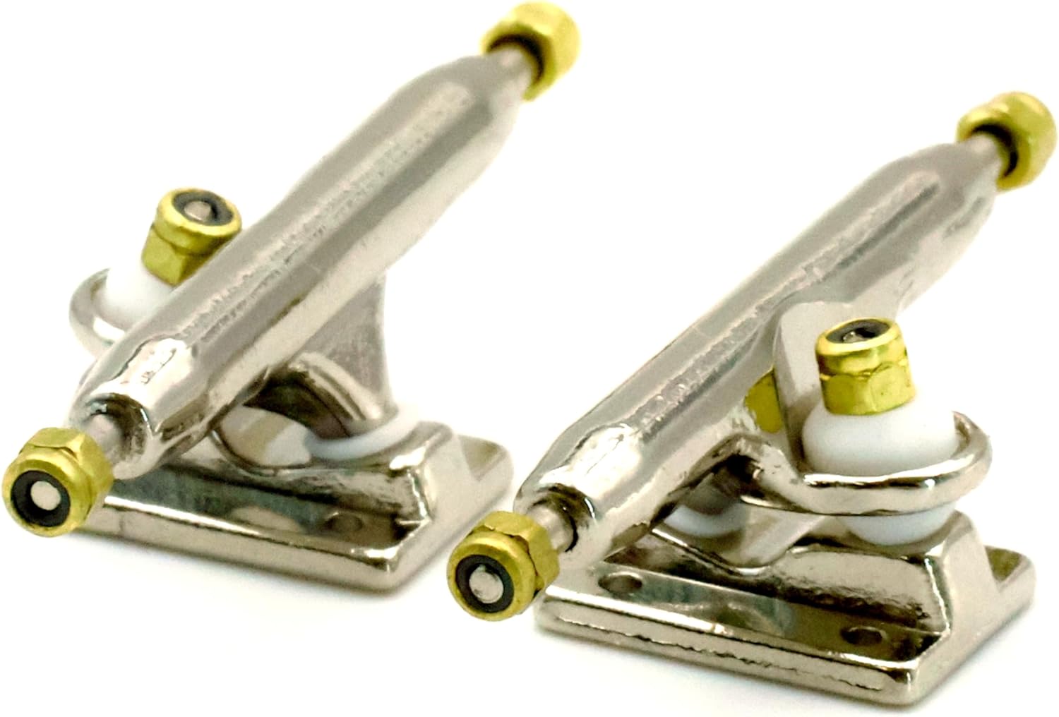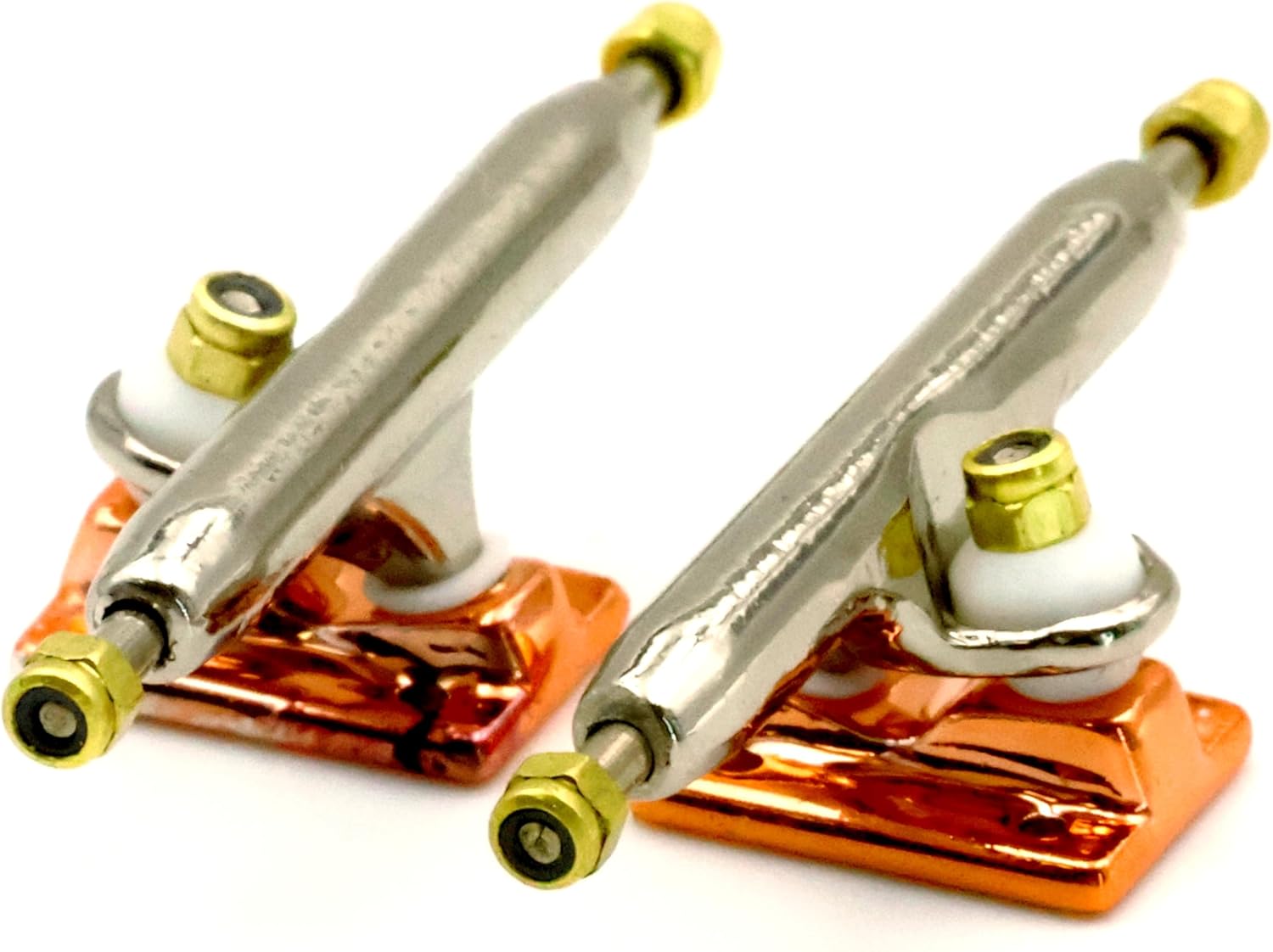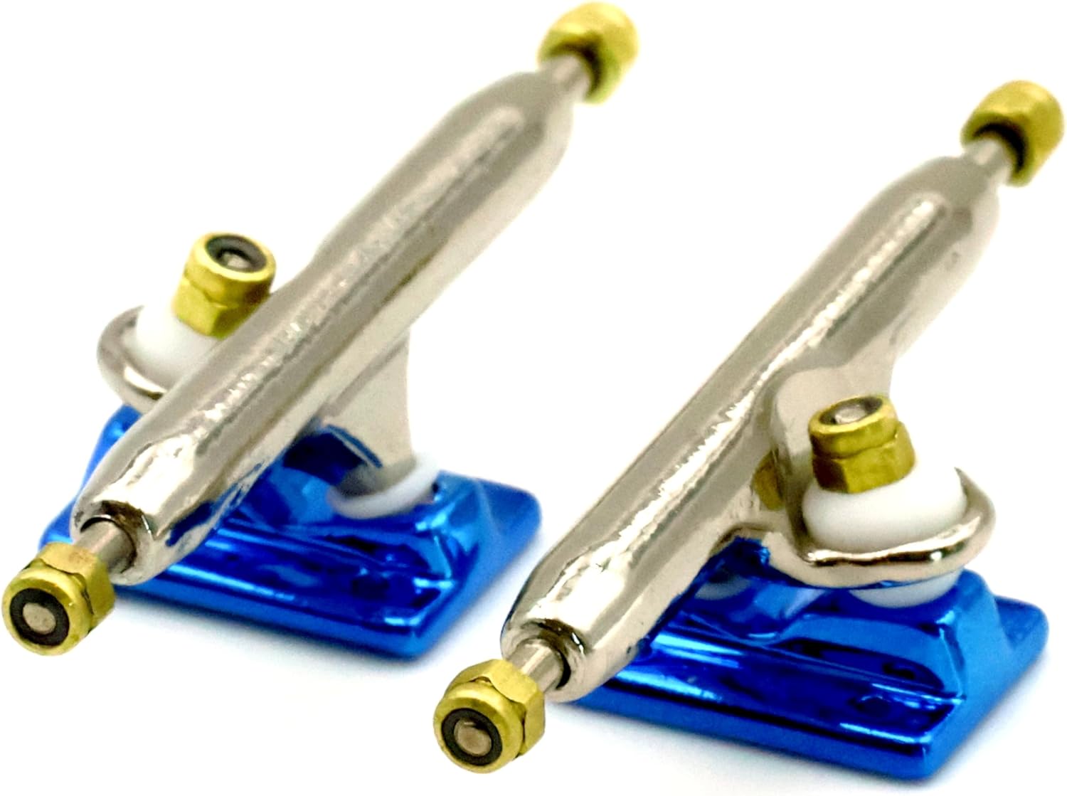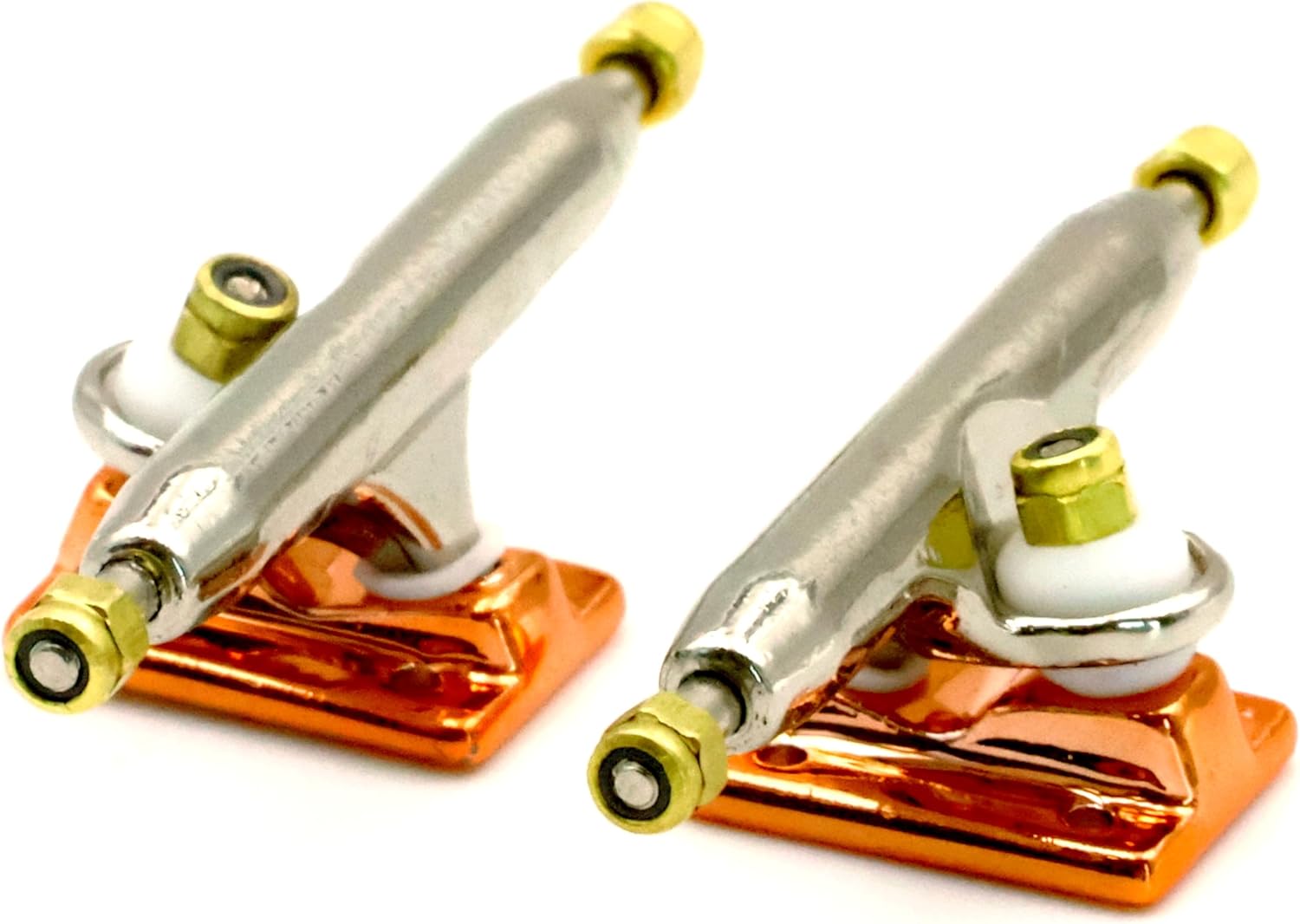 ★ RACOFSB V3 Truck is an upgraded version of V2.made of solid zinc alloy,knurled axle and improved hanger make the axle not easy to loosen★ V3 fingerboard trucks have a new hanger shape design,the kingpin of V3 base is tilted, which is different from V1 and V2 base.★ The bushing and pivot cup of V3 fingerboard truck are made of soft and highly elastic materials to make it have a flexible riding experience★ The whole truck adopts electroplating surface treatment,paint are more shiny and will not wear down easily over time★ Lock nuts with nylon inserts have a good anti loose effect.Thick nylon layer is not easy to fall off★ V3 trucks are compatible with all types of single bearing fingerboard wheels,and perfect for riders of all skill levels★ 1 set including 2 trucks,6 gold lock nuts(Installed), 9 screws and 1 screw driver