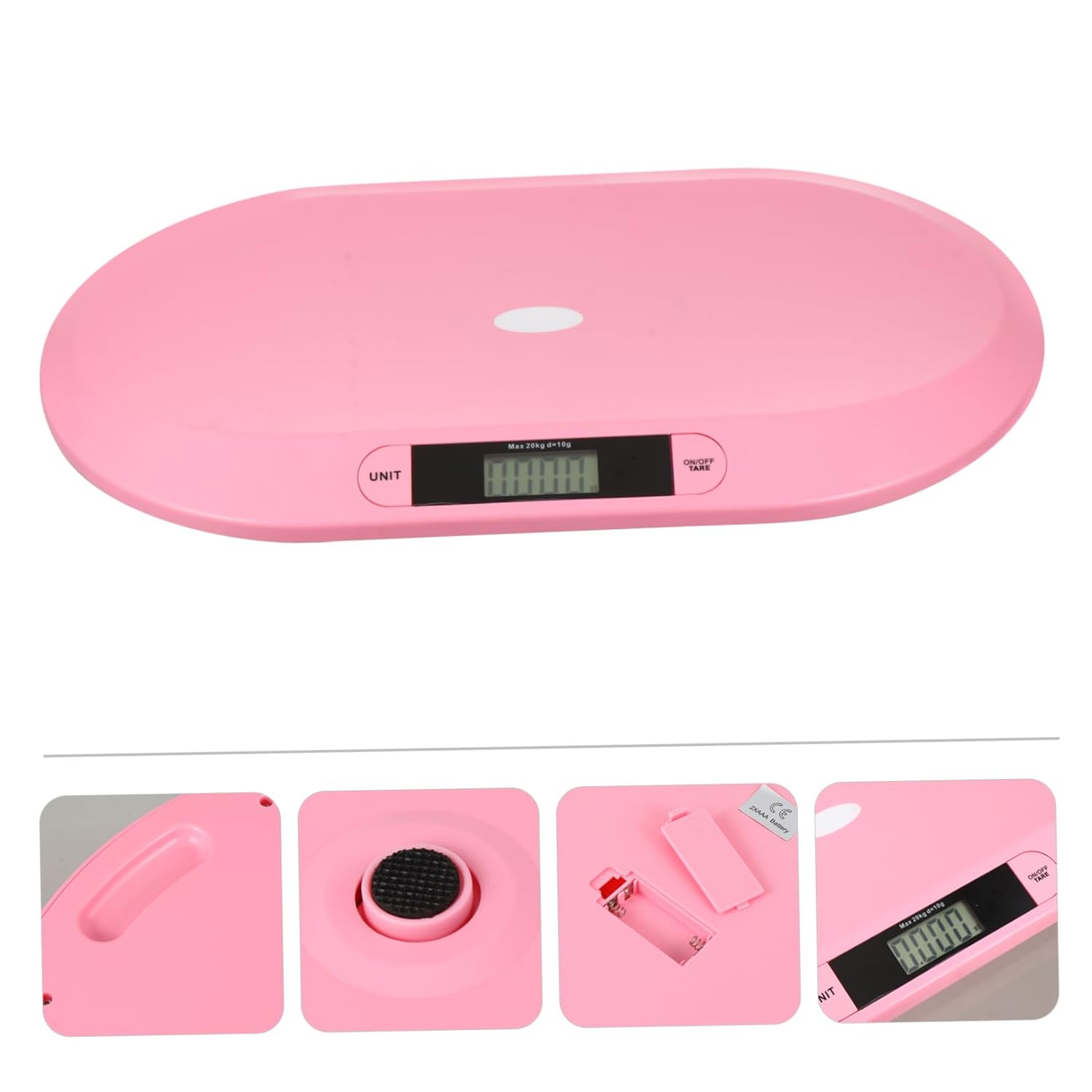Package List 1 x electric scale Characteristics - Size: About 55.00X33.00X2.70cm/21.61X12.97X1.06inch Digital Weight Scale. - Material: ABS Digital Weight Machine. - Color: Pink Digital Scale. - Capacity: 20g-20kg Pet Scale. - The electric scale is shape in super thin and flat appearance. The one coin height is convenient to store under bed or cabinet Scale. - Powered by 2 AAA batteries (not included) Weight Scale. - Its big size design allow or pet to it comfortably Weight Scale. - The scale with a big LCD screen can show you the weight data clearly and accurately, without reading obstacles Weighing Machine. - The scale with 20kg max bearing capacity is design for , puppy, rabbit, cat, etc Electronic Weight Scale. - The scale is designed with classic pink color, which is compatible with most home decoration style 20kg Scale.Goods DescriptionWeighing Machine It is a scale to measure the weight of your .Digital can Instantly check if your is getting enough food by putting them on this scale.20kg Scale It is used for weighing newborns, babies or even kittens or puppies