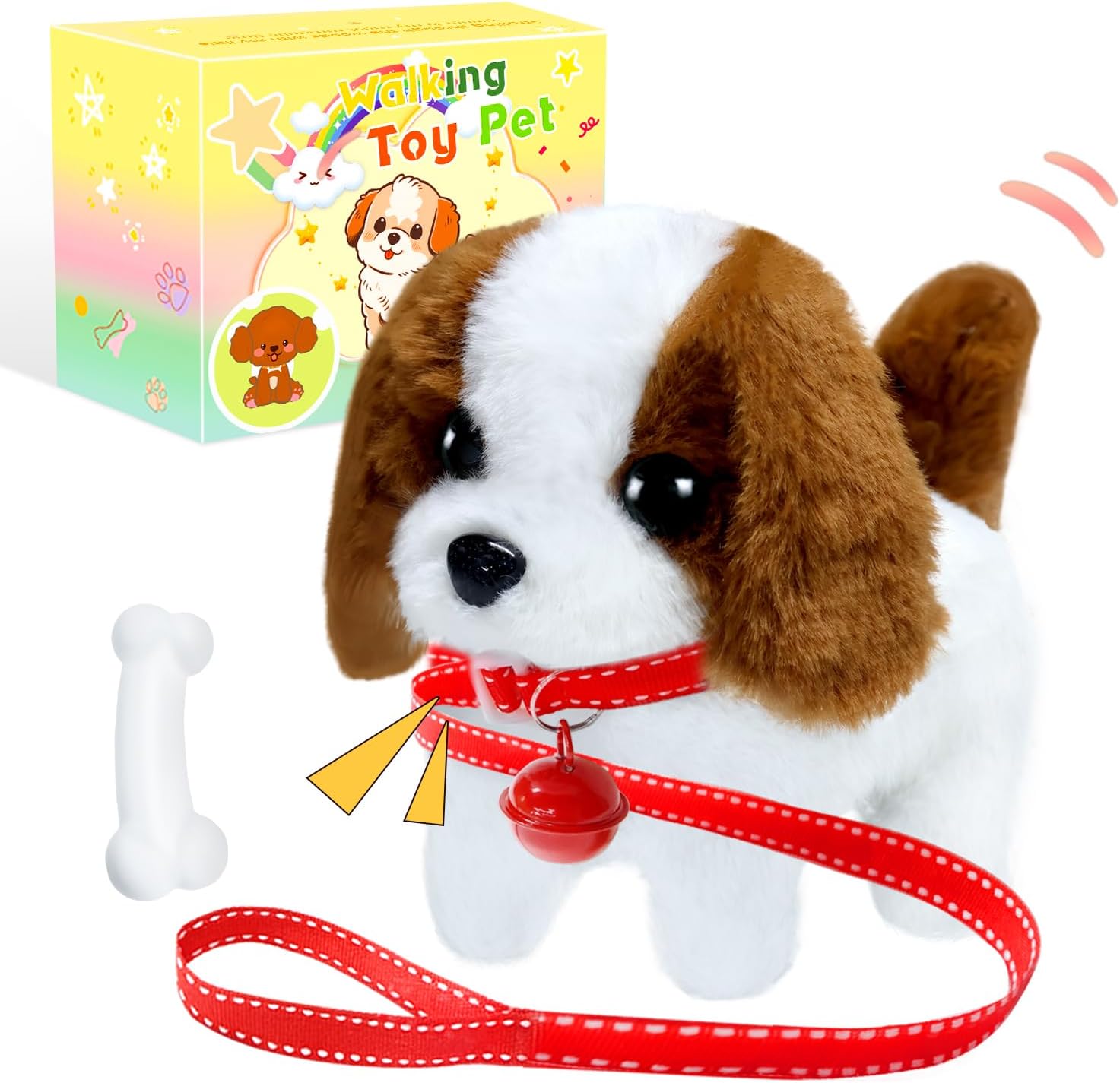 Complete Gift Set: Delicately packaged in an elegant gift box, this toy puppy for girls and boys includes a plush dog, leash, batteries, bell, and bone. An ideal puppy toys for kids ages 3+ for Christmas, birthdays, or first-time pet role-play