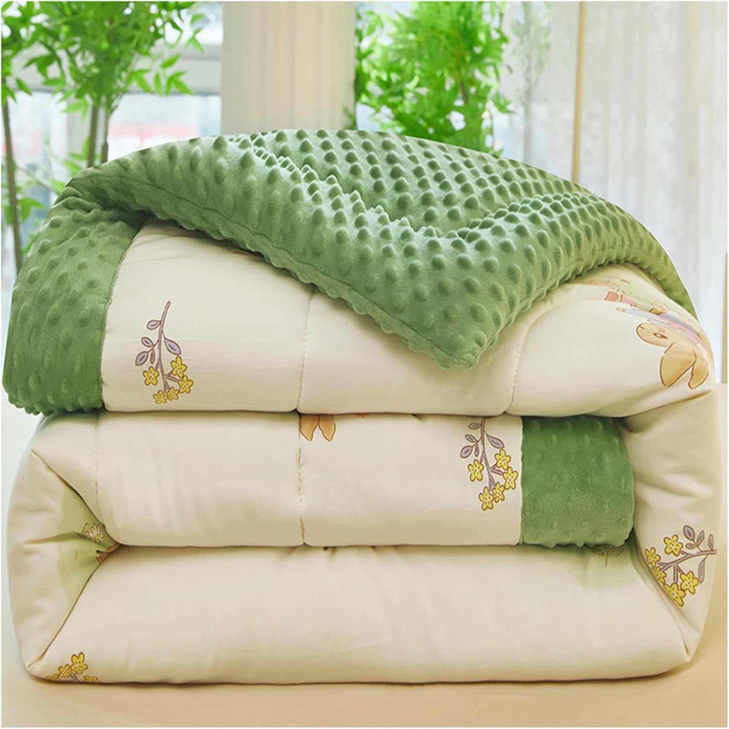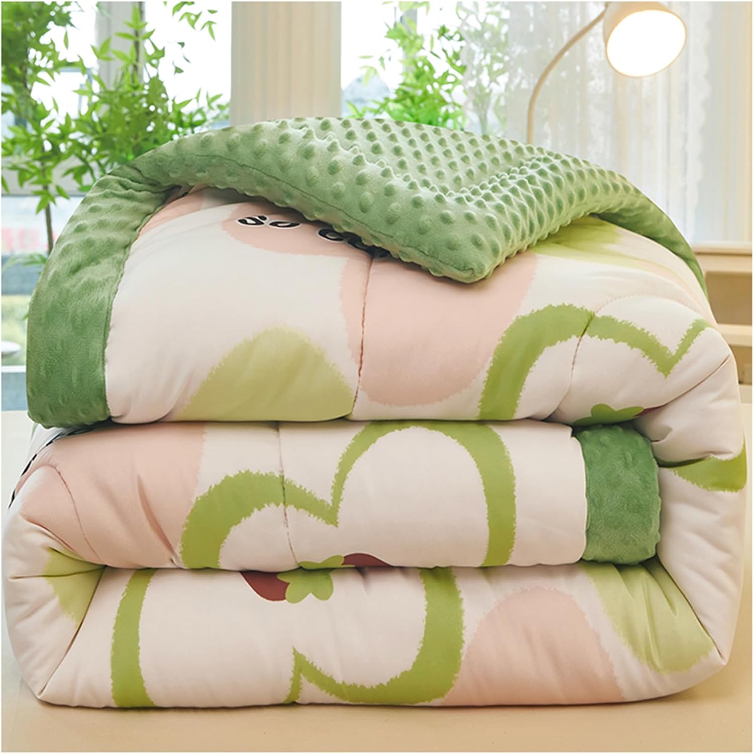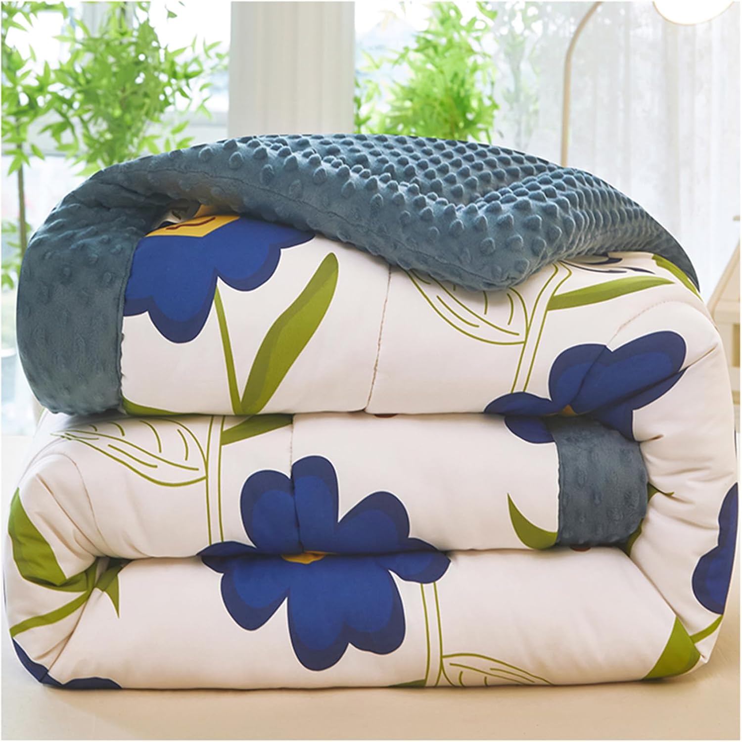 • [SKIN FRIENDLY AND WARM]: Double-sided warm quilt, A-version of washed cotton fabric not easy to shrink, absorb sweat, soft, skin-friendly, warm, breathable and lightweight. B-version dou dou velvet fabric has a delicate and soft texture, and the dense fluff does not shed.